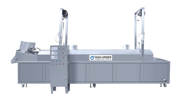 ·全不銹鋼制造,自動程度高、有自動、手動起吊系統(tǒng)、獨(dú)特的產(chǎn)品輸送系統(tǒng)、排渣系統(tǒng)、加熱系統(tǒng)、油循環(huán)系統(tǒng)、排煙系統(tǒng)、電控系統(tǒng)等組成。采用網(wǎng)帶疏送產(chǎn)品變頻或無級調(diào)速。